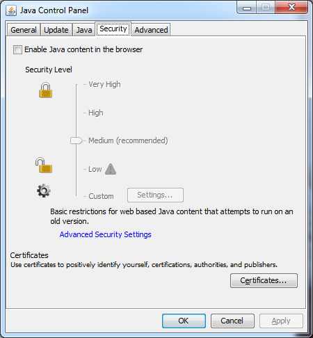 java jre 10 32 bit enable disable toggle on security tab
